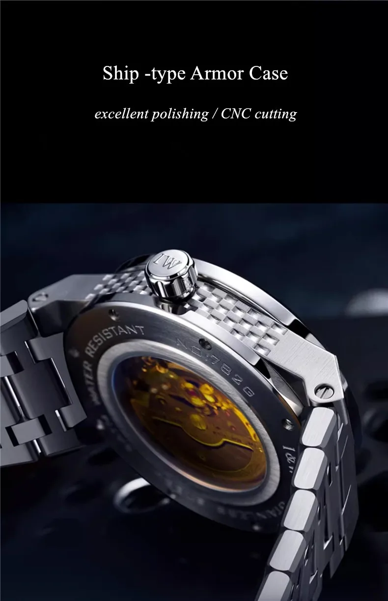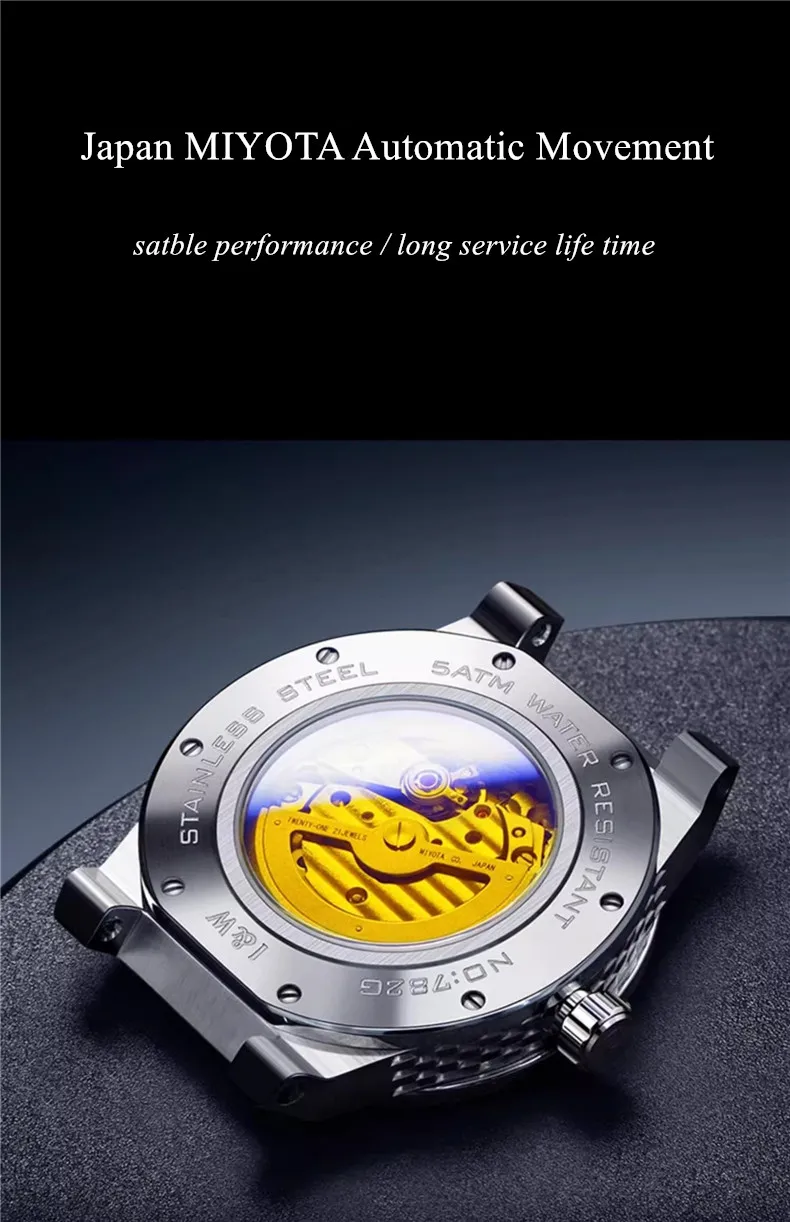 - Movimiento: Automático de cuerda automática, Movimiento mecánico automático japonés MIYOTA 8215