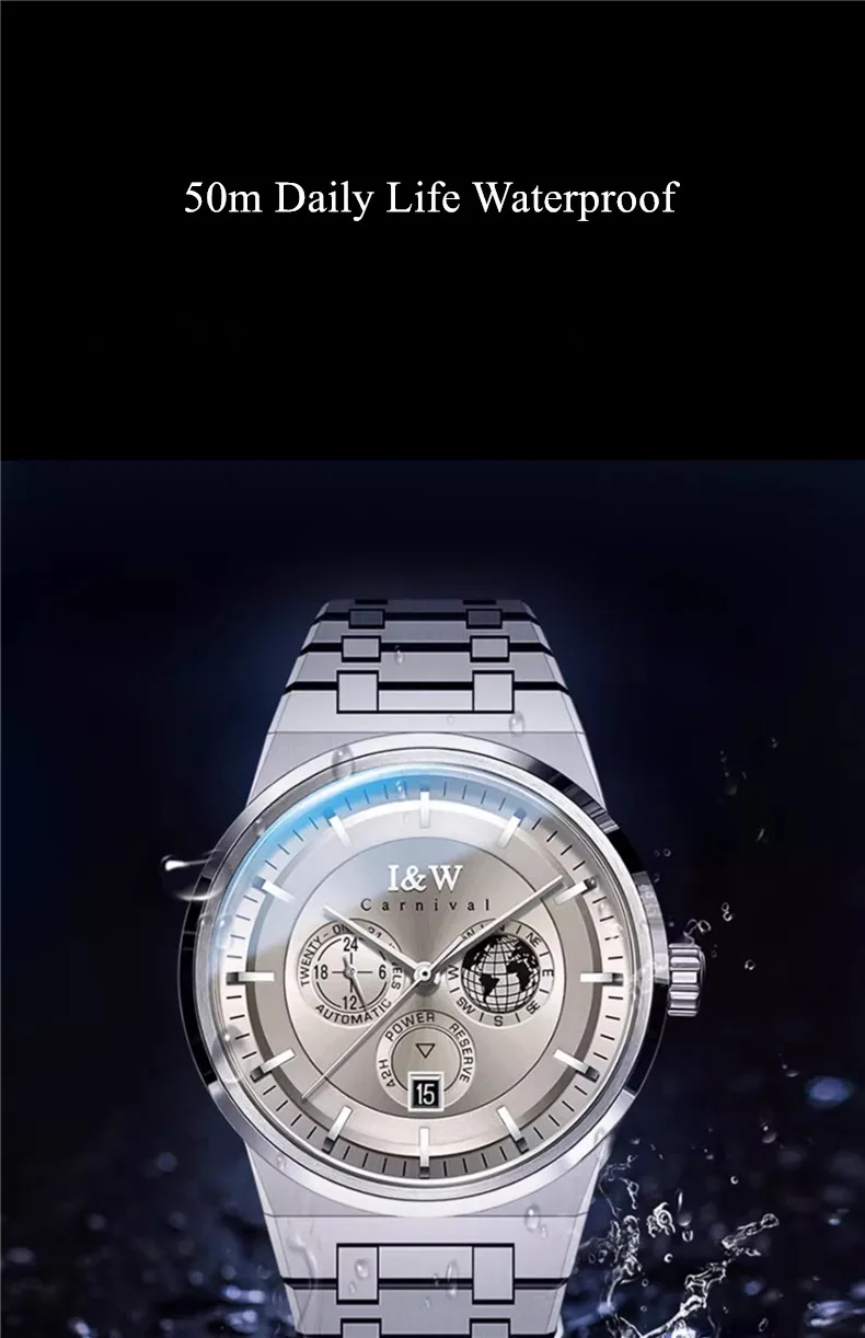 - Reloj mecánico de negocios CARNIVAL para hombre, de lujo, automático, resistente al agua hasta 50 m, 2024